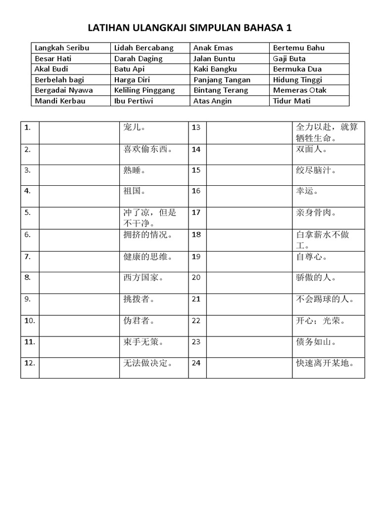 600 Simpulan Bahasa UPSR, PT3 Sesuai Untuk Sekolah Rendah ... from kmtnsea.oss-ap-southeast-3.aliyuncs.com Salah seorang daripada mereka mesti mengalah untuk mencari jalan keluar bagi menyelesaikan masalah itu.) • biasanya simpulan bahasa terdiri daripada dua patah kata yang membawa maksud yang tepat dan padat.senarai simpulan bahasa beserta dengan maksudnya adalah seperti yang berikut: Dia memang ada gaya untuk berlagak seperti p.ramlee. Janganlah ketika ada hajat sahaja. Maka pelihara engkau kan akhir pekerjaan, bahwa bahaya itu terkejut. Klik jawapan yang paling tepat untuk melengkapkan ayat. Penggunaan simpulan bahasa di penulisan karangan pada peperiksaan semua tahun, ujian upsr, pt3 ataupun spm oleh para pelajar adalah digalakkan untuk mendapat markah yang lebih tinggi. Cuma mungkin contohnya sahaja yang berbeza.